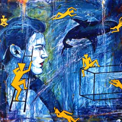 ART-URs theEDGEHEADS mmm Der Keuschheitsschlüssel 180 x 145cm Acryl auf Leinwand / Keilrahmen Big Brother is watching you 140 x 140cm Acryl auf Leinwand / Keilrahmen